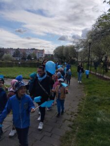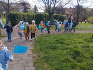 To inicjatywa mająca na celu zwiększenie świadomości społeczeństwa na temat spektrum autyzmu. Z tej okazji organizowane są różnorodne wydarzenia, kampanie edukacyjne i akcje społeczne, które mają na celu promowanie zrozumienia, akceptacji oraz wsparcia dla osób z autyzmem i ich rodzin.  My z tej okazji zorganizowaliśmy marsz ulicami osiedla Lenartowicza, aby przypominać nam wszystkim o potrzebie empatii i otwartości wobec różnorodności. W marszu udział wzięły wszystkie przedszkolaki, które na znak solidarności z osobami dotkniętymi spektrum autyzmu, niosły niebieskie flagi i balony.