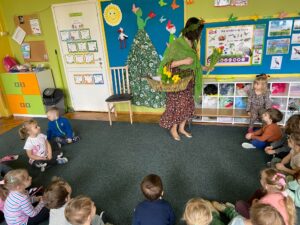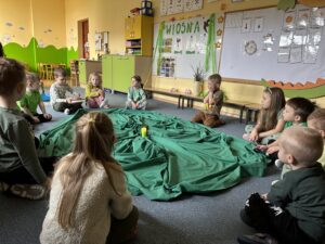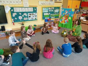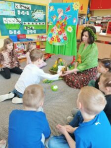 21 marca wszystkie grupy powitały wiosnę. Nasze przedszkolaki przygotowały wiersze i piosenki, a piękna Pani Wiosna zadawała dzieciom zagadki o pierwszych oznakach wiosny. Następnie wszyscy udali się na wiosenny spacer.