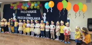 Pasowanie na przedszkolaka to wyjątkowa uroczystość, która w naszym przedszkolu odbyła się w czwartek 23 października. Od samego rana trwały przygotowania i próby. Mali artyści zaprezentowali piosenki, tańce oraz przedstawienie. Dla większości był to pierwszy, bardzo ważny występ. Po części artystycznej nastąpił akt pasowania, czyli dotknięcie ramienia każdego przedszkolaka ogromną kredką przez Panią Dyrektor Agnieszkę Gwiżdż. Dla przedszkolaków było to wielkie przeżycie, a w nagrodę otrzymały zaproszenie do sali zabaw Koala Cafe w Kętach.