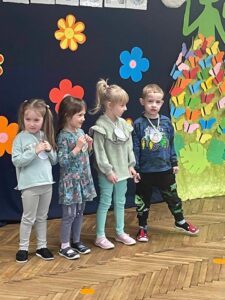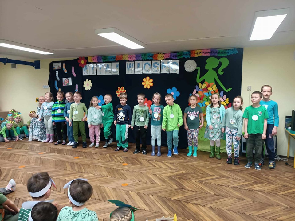 21 marca wszystkie dzieci powitały wiosnę. Każda grupa zaśpiewała piosenkę, a w podziękowaniu Pani Wiosna wręczyła dzieciom słodki poczęstunek oraz ofiarowała kwiatka bratka na każdy oddział. Niech wiosna przynosi nam już tylko słoneczną i ciepłą pogodę!
