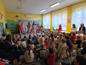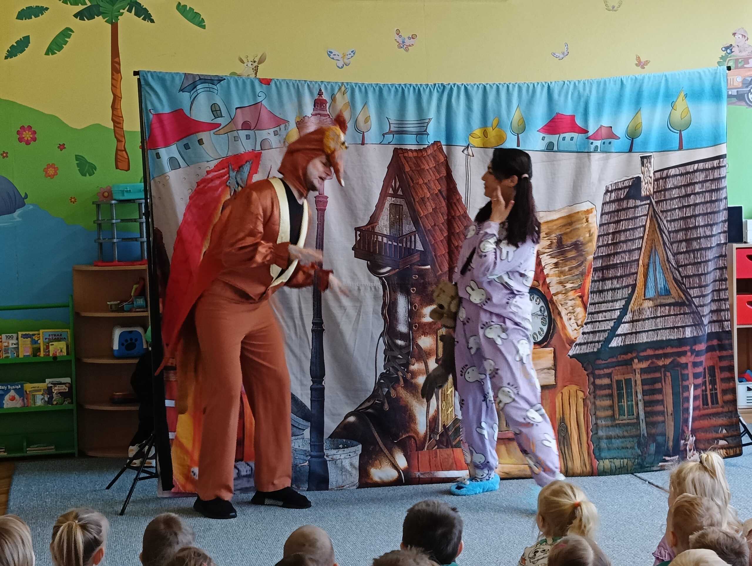 Bajka dostarczyła naszym przedszkolakom wielu pozytywnych wrażeń i wspaniałej zabawy. Świadczyły o tym ich żywiołowe reakcje na pojawiających się bohaterów i akcję dziejącą się w przedstawieniu.